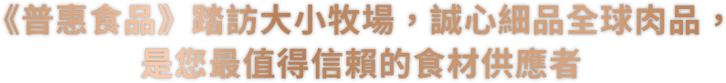 我們不只為了品質不畏困難的走訪全球大小農(nóng)牧場!我們更擁有著強大的貿(mào)易團隊提供您最專業(yè)的國際肉品價格走勢的分析讓您不必再畏懼市場的起伏不定!而我們的專業(yè)與35年來對品質的堅持,更使我們成為國際肉品大廠指定的代理商。